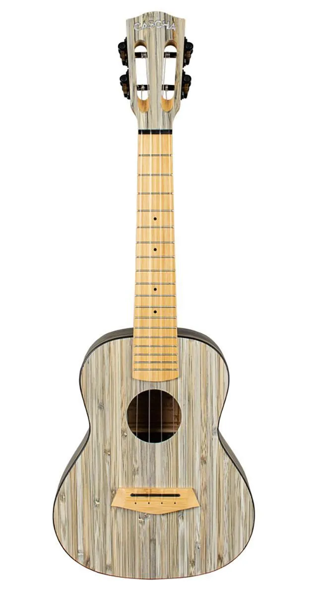 Выдающийся укулеле, полностью изготовленный из высококачественной древесины бамбука, тщательно отобранной в соответствии с самыми высокими стандартами и особыми критериями. Натуральное дерево с характерным графитовым рисунком, матовая отделка и высококачественные черные колки придают укулеле красивый, индивидуальный и элегантный вид.