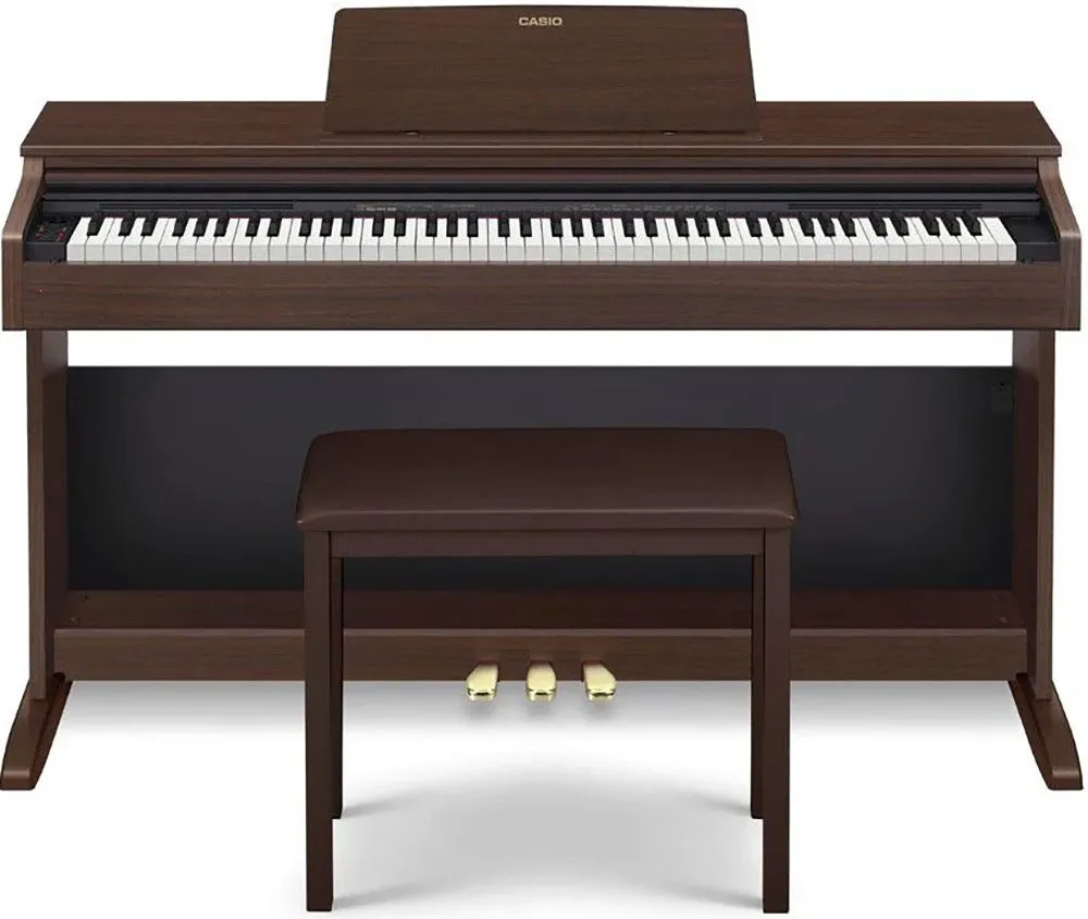 Casio Celviano AP-270 – цифровое пианино кабинетного типа, оснащённое крышкой клавиатуры и тремя педалями.