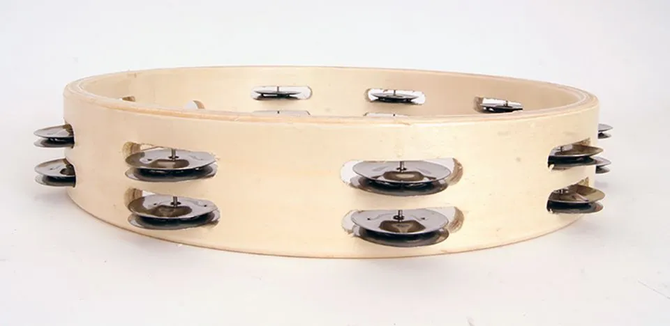 Тамбурин круглый без кожи 12" деревянный, 2 ряда бубенцов.
