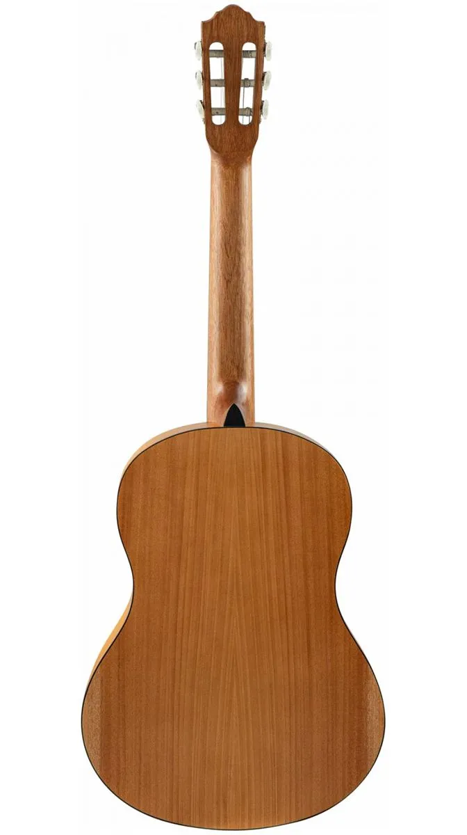 Верхняя дека изготовлена из ели, что обеспечивает чистое звучание, так необходимое для грамотного развития слуха. Нижняя дека и обечайки из красного дерева, благодаря чему звук приобретает мягкость и глубину. Надежная колковая механика обеспечивает мягкий и точный ход колков, легкость при настройке, а главное - хорошо держит строй.