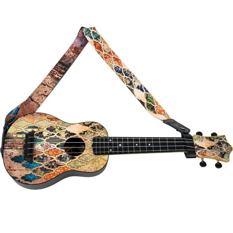 Стильный ремень для укулеле Flight Granada с солнечным и романтичным рисунком, навеянным одной из укулеле серии Flight Travel.