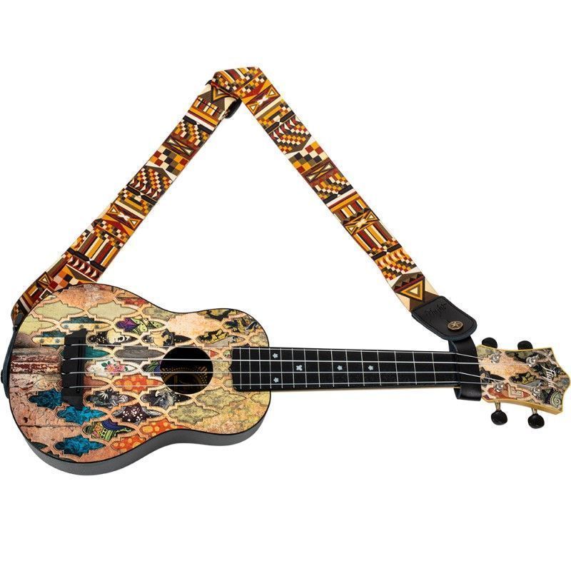 Красивый ремень для укулеле Flight Marigold с красивым ярким геометрическим рисунком.