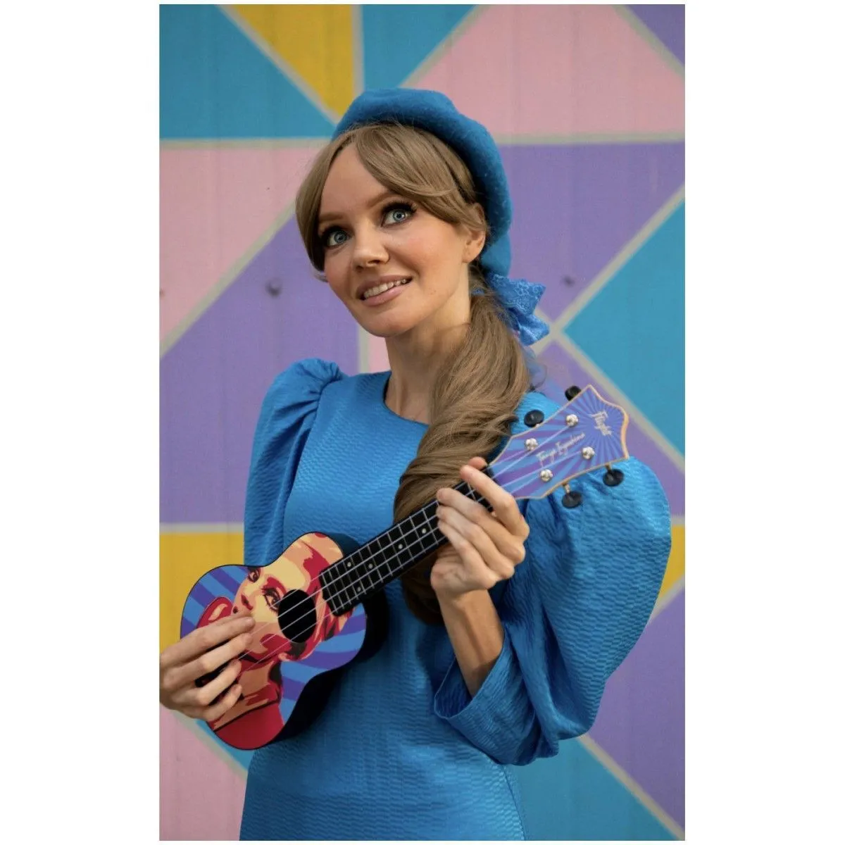 Дизайн верхней деки укулеле вдохновлен стилем советских девушек 60х годов, и эта укулеле настолько же яркая и необычная, как и образы, которые лично создает Татьяна для своих песен и клипов.