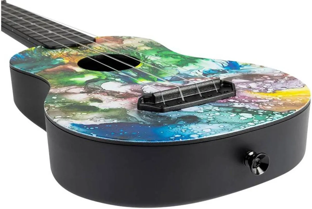 Объемное и яркое звучание инструмента достигается за счет особой полукруглой формы корпуса и звонких флюрокарбоновых струн, которые обычно стоят на более дорогих, премиальных укулеле.